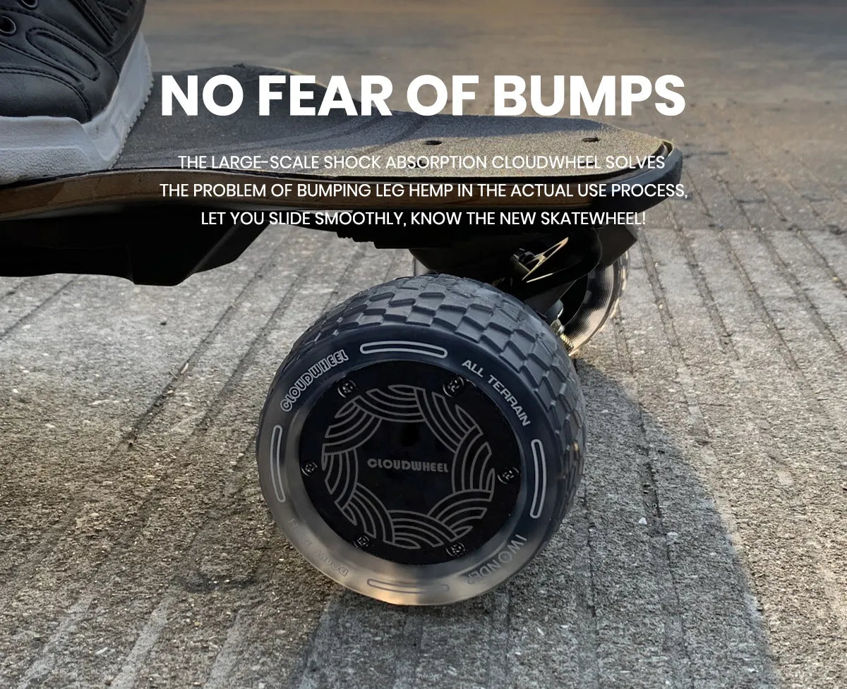 Designed for real-world riding conditions, CloudWheel Donut wheels handle rough pavement, cracked asphalt, and light gravel better than traditional PU wheels—without the weight or maintenance of pneumatic tires.